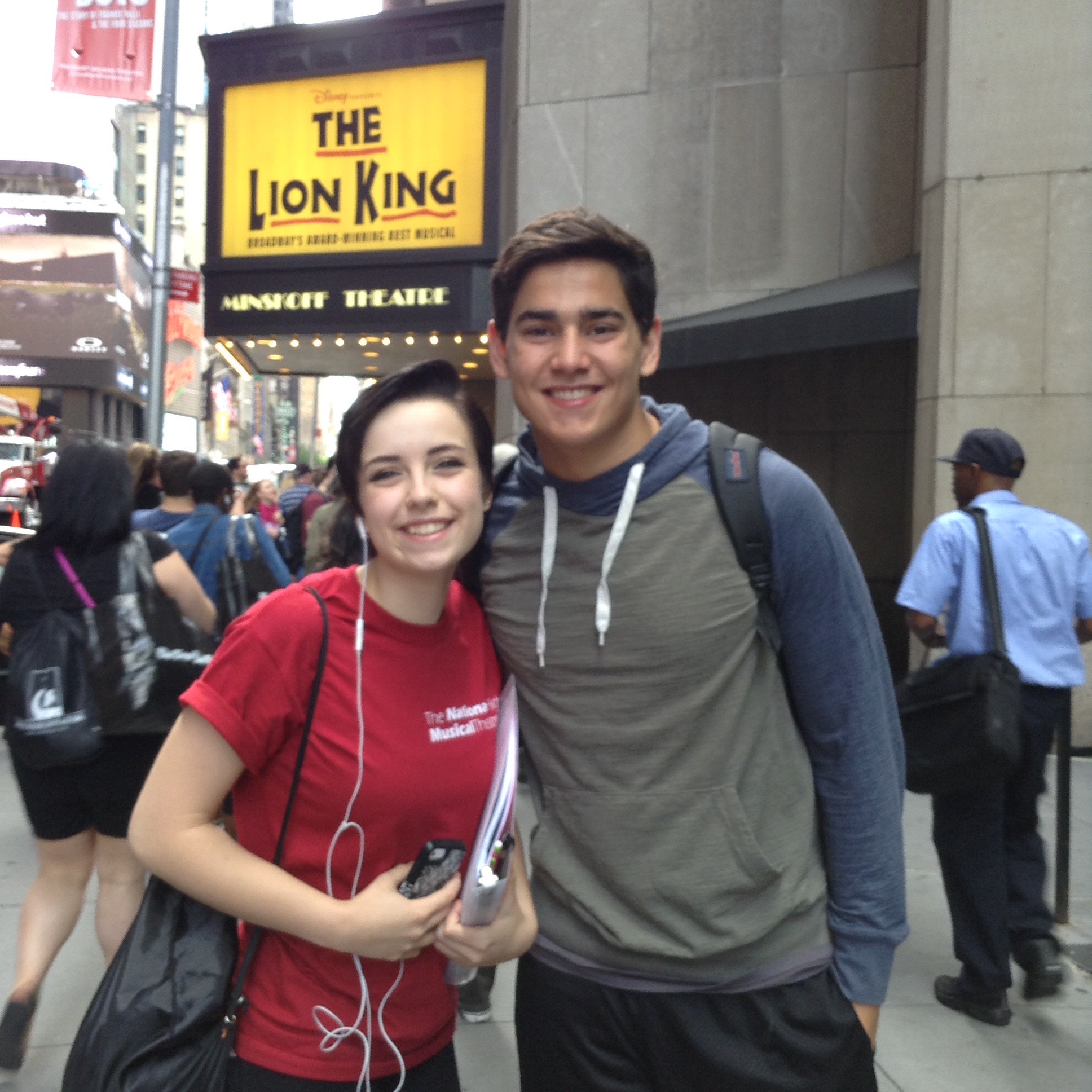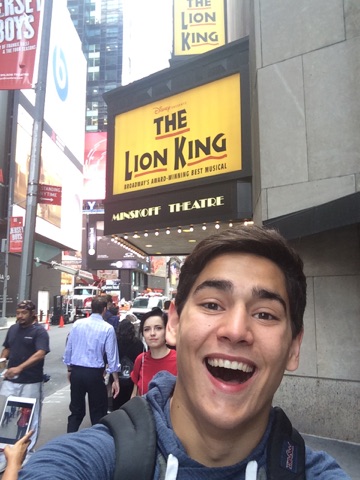 Yesterday was the big day for Chris and Katelyn – they got to perform on Broadway for the very first time! Unfortunately we didn’t get to see the performance here at home. Last night was the Jimmy Awards at the Minskoff Theatre (where THE LION KING calls home). And what an incredible evening! Though neither of them won the award for the night, they both have come away from this experience as a better actors and performers! Check out below to hear about their day and see some awesome videos and photos!